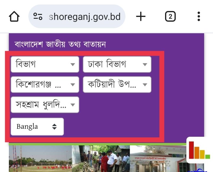 Voter List দেখার এই ধাপে আপনার বিভাগ সিলেক্ট করার এখন আপনাকে আপনার জেলা, উপজেলা, ইউনিয়ন সিলেক্ট করবেন একটি একটি করে এই সবটি সিলেক্ট করবেন, এখন যদি আপনার মোবাইলে একসাথে সিলেক্ট করতে না পারেন তাহলে আপনার মোবাইলের ব্রাউজার এর Desktop version ওপেন করবেন, নতুবা আপনি একটি একটি করে সিলেক্ট করবেন, সিলেক্ট করার সাথে সাথে নতুন করে পেইজ আসবে আপনার বিভাগ, জেলা, উপজেলা, ইউনিয়ন সব সিলেক্ট করবেন।