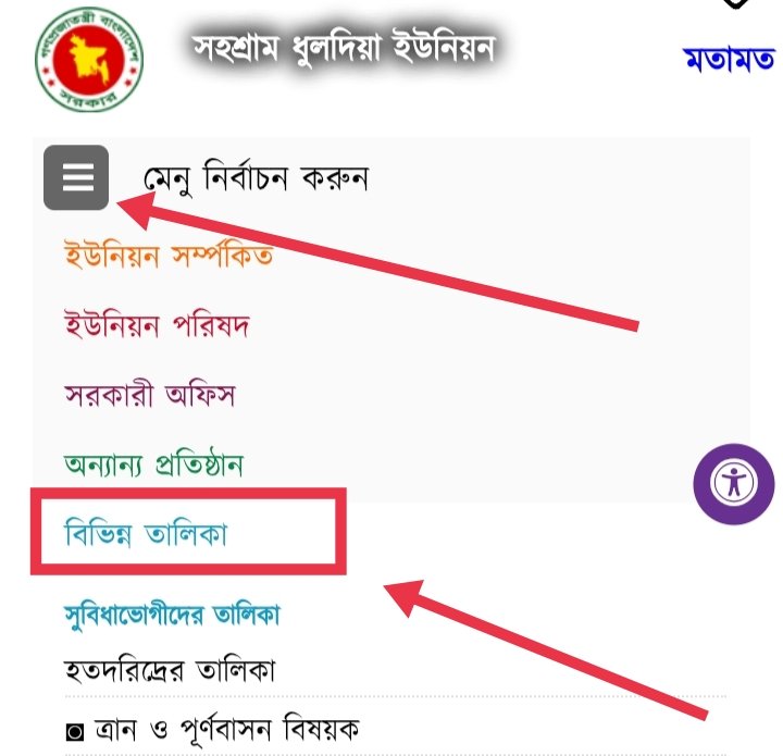 এই ধাপে আপনার সামনে আপনার ইউনিয়নের ওয়েবসাইট আসবে, আসার পর আপনি এই পেইজে মেইন মেনুতে বিভিন্ন তালিকা করে একটি অপশন দেখতে পাবেন এই অপশনে ক্লিক করলে সবশেষে চুড়ান্ত ভোটার তালিকা নামে একটি অপশন দেখতে পাবেন নিচের ছবির মত।