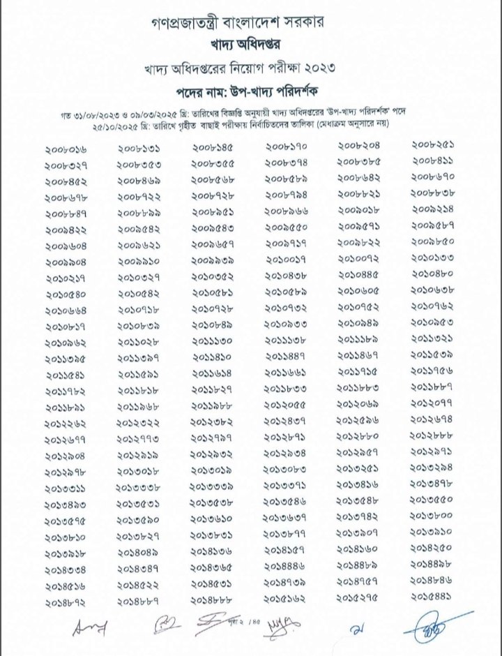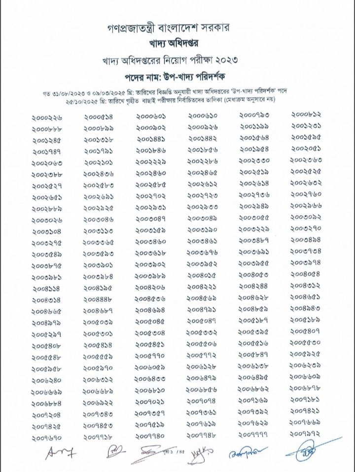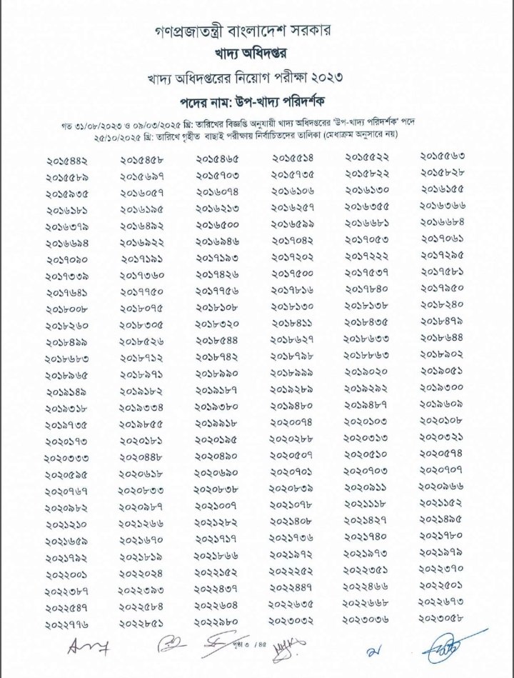 উপখাদ্য পরিদর্শক পরীক্ষার ফল প্রকাশ, উত্তীর্ণ ৭৮১৫ নিচে পিডিএফ ফাইল ডাউনলোড করেন।